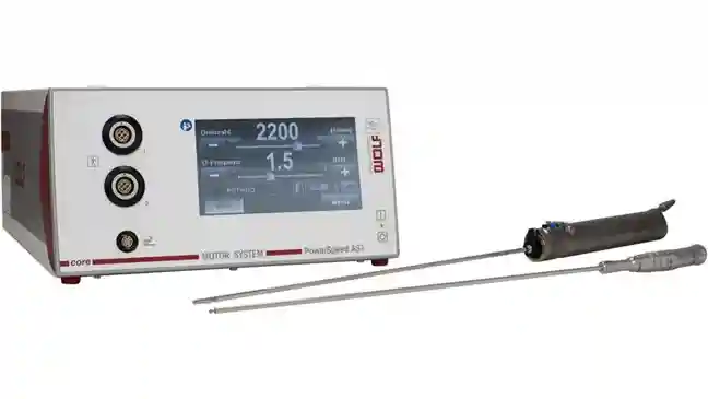 The PowerSpeed AS1 universal motor system for surgical intervention on the spine combines power and speed at once. In combination with the use of various motor handpieces and tools the PowerSpeed AS1 provides fast, powerful and reliable resection and drilling of bone and soft tissue at the spine.